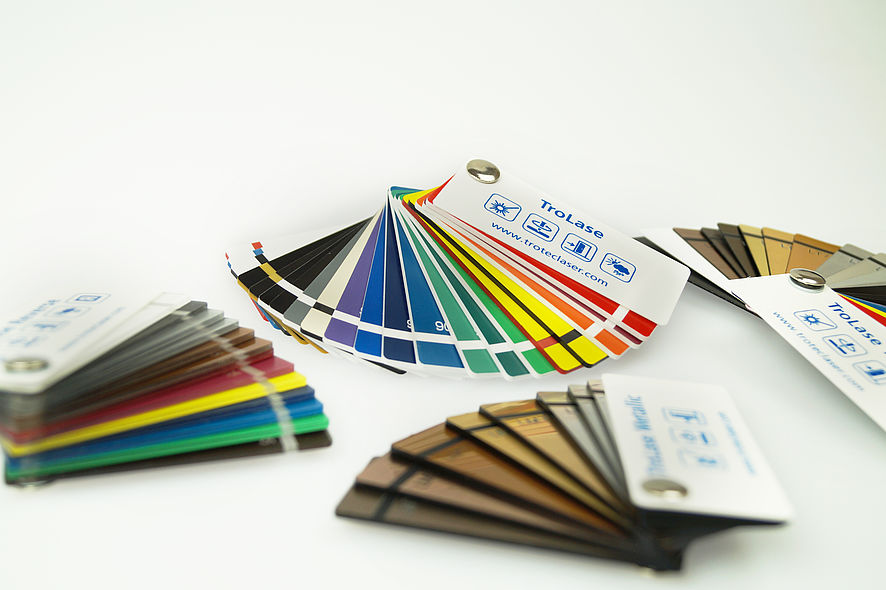 Láminas bicolor de aluminio, personalizables mediante la técnica de grabado láser. Útiles para señales, placas para nombres, placas informativas y placas de buzón.